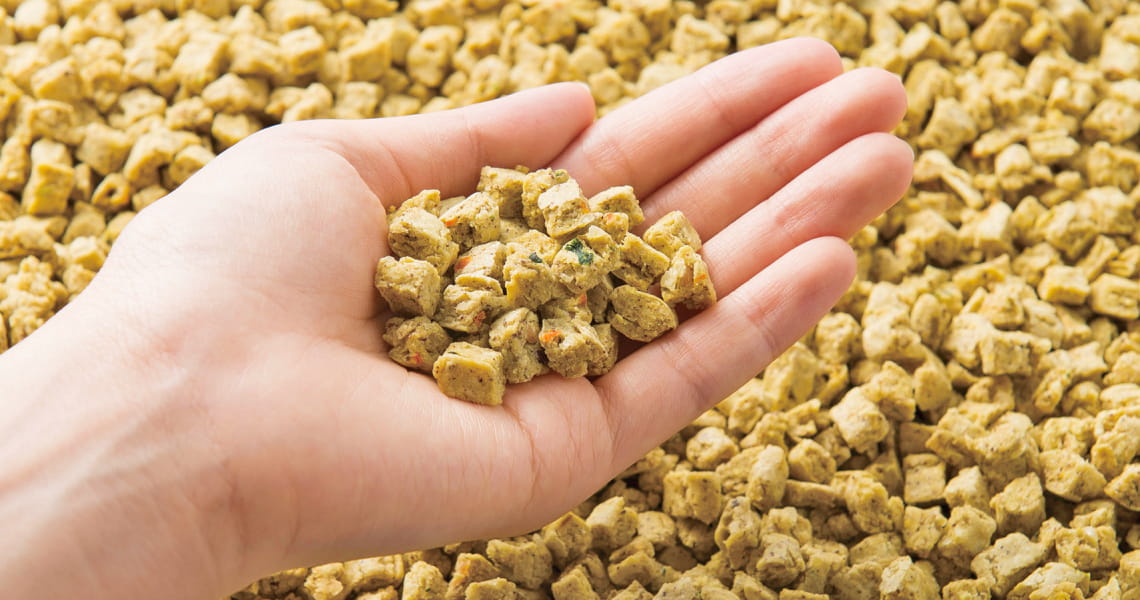 天然食材由来の食物繊維を配合し、毎日の食事から腸内環境に配慮。生おからなどの自然素材を使用し、健やかなコンディション維持をサポートします。うんちの状態やニオイなど、日常の変化を通して実感される飼い主さまもいます。
