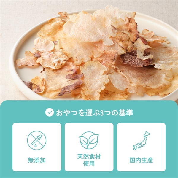 新鮮な天然食材を、おいしさも栄養もそのままに。安心にもとことんこだわった、自慢のおやつです。 すべて人が食べられる材料を使用しています。